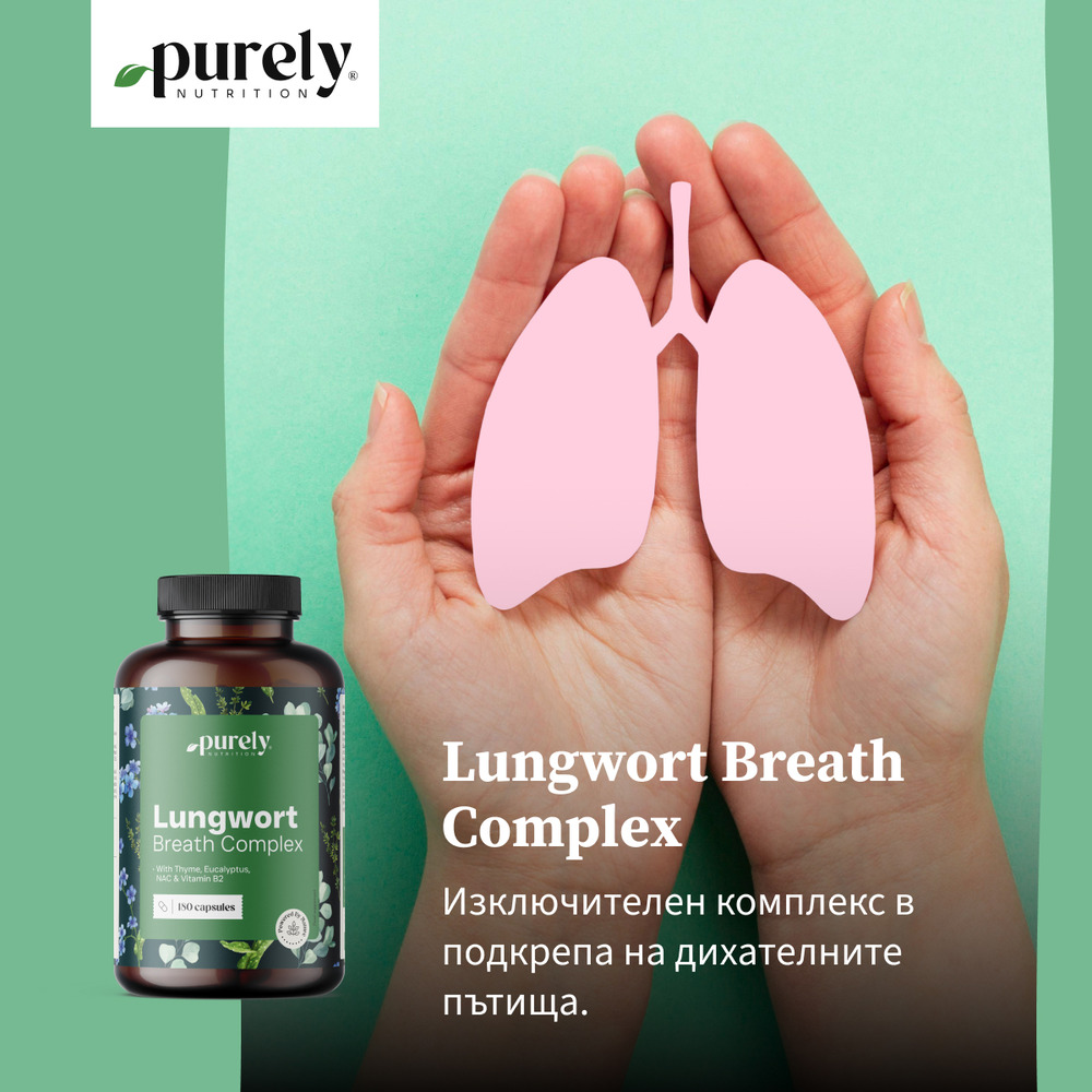 Lungwort Breath Complex съчетава внимателно подбрани екстракти и хранителни вещества, които заедно образуват мощна формула – подходяща за всеки, който търси усещане за лекота: